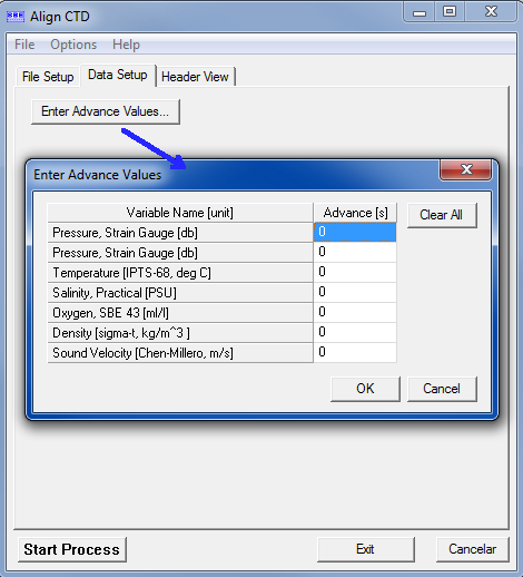 Los valores de desfases a aplicar dependerán de la variable y el tipo de CTD utilizado para la adquisición de datos.