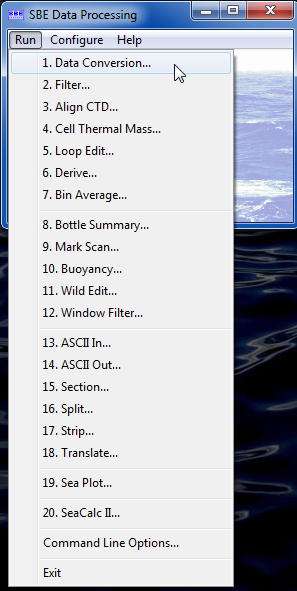 El software SEASOFT V2, se utiliza actualmente para la adquisición y posterior procesamiento de la información básica de presión, temperatura y conductividad, observada en la columna de agua. Este software cuenta con subprogramas individuales: