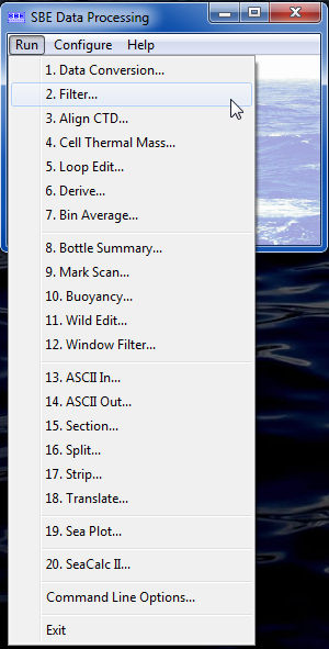 Los datos de presión son filtrados con un tiempo constante igual a 4 veces la tasa de scan del CTD. Este programa permite utilizar 2 tiempos constantes, de esta manera, diferentes parámetros pueden ser filtrados con diferentes tiempos constantes en una corrida del filtro. Los valores típicos utilizados son: