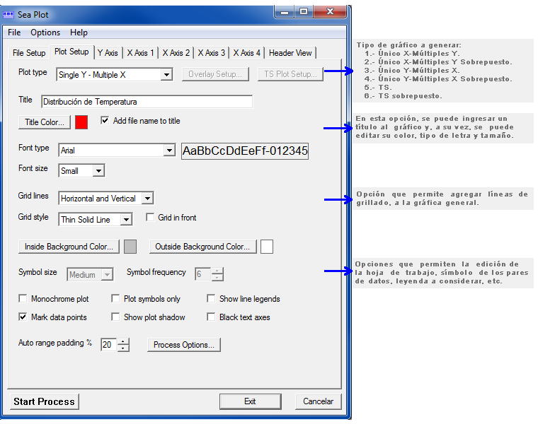 Los gráficos a generar, son del tipo XY, en el cual se pueden superponer distintas variables, dependiendo de los sensores del equipo.