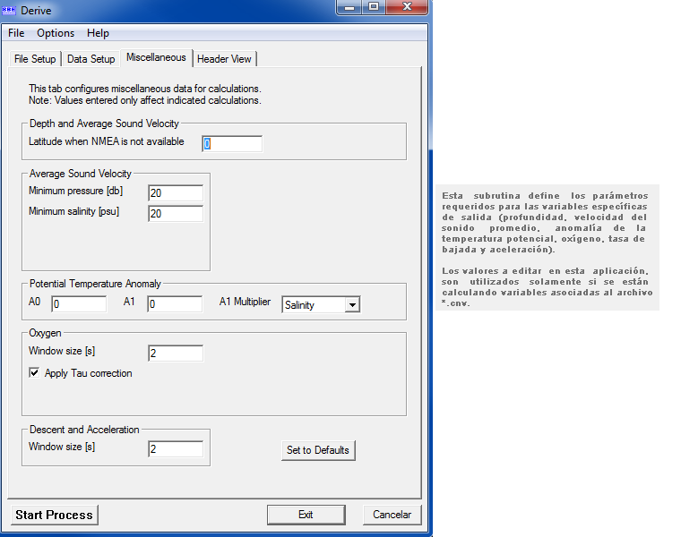 Este procesamiento debiese ser usado siempre y cuando la captura de los datos se haya realizado según las recomendaciones estándar, considerando una velocidad de descenso del instrumental no superior a 1m/s.